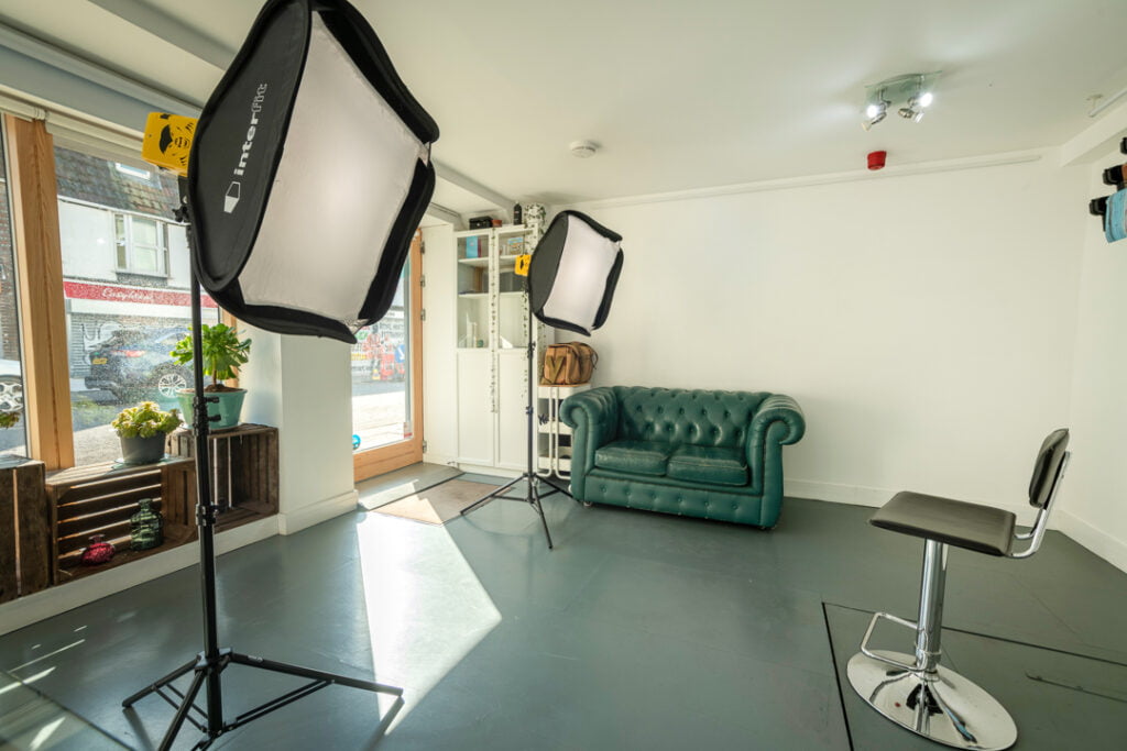 Located on Oxford Street, our south facing, easily accessible studio is right in the heart of the city. We hire our studio out to anyone in need of a fresh, white wall space for photography. In addition to the space itself, we also offer the use of our equipment and guidance on how to use it. Our backdrops can comfortably fit around 4 to 6 people. If you are looking for a larger space, we’re happy to arrange use of our sibling studio in Hove.