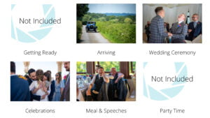 All packages below include an 8x8inch leatherette wedding album printed on metallic photographic paper. You will receive all your images we’ve selected with no hidden extra charges to download them.